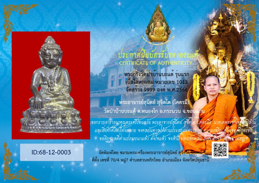 ID:68-12-0003 บัตร/鉴定卡/Card 06 ธ.ค. 2025 พระกริ่งจีนใหญ่ รุ่นแรก พระอาจารย์สุนิตย์ สุจิตโต (โคตรมี) วัดป่าบ้านบะแต้ จ.ขอนแก่น พ.ศ. 2566
